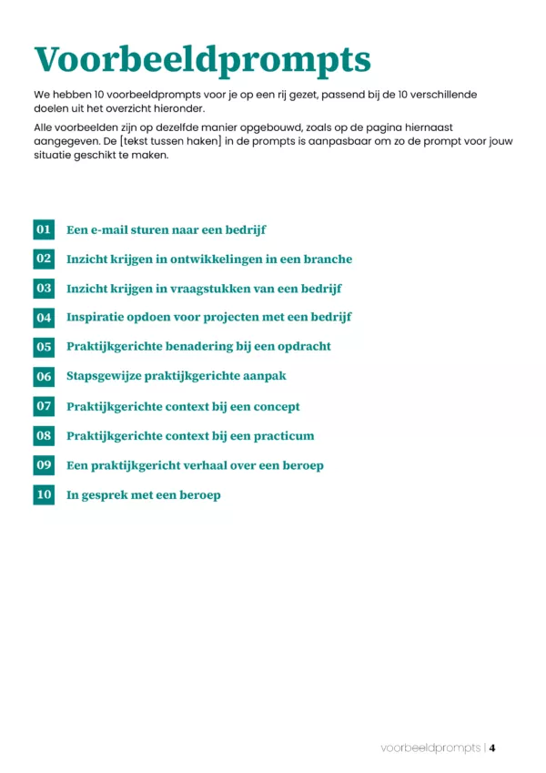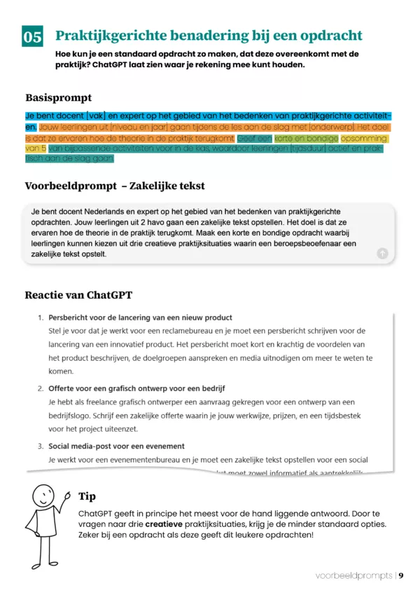 • 10 praktijkgerichte prompts die je eenvoudig kunt inzetten voor verschillende vakken en onderwijsniveaus.