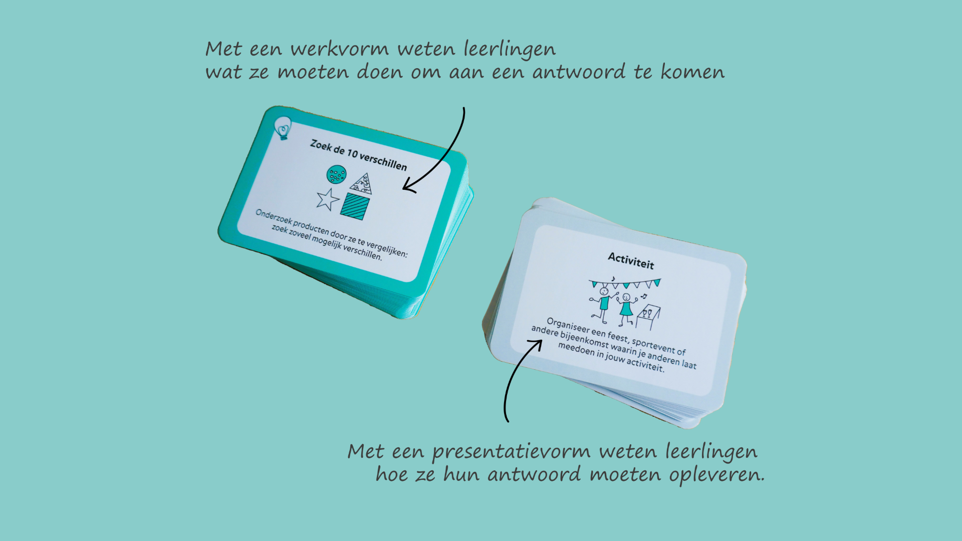 Bij deze concrete vragen kiezen we actieve werkvormen en bijpassende presentatievormen en zo ontstaat een prikkelende opdracht waar leerlingen met veel plezier aan werken.