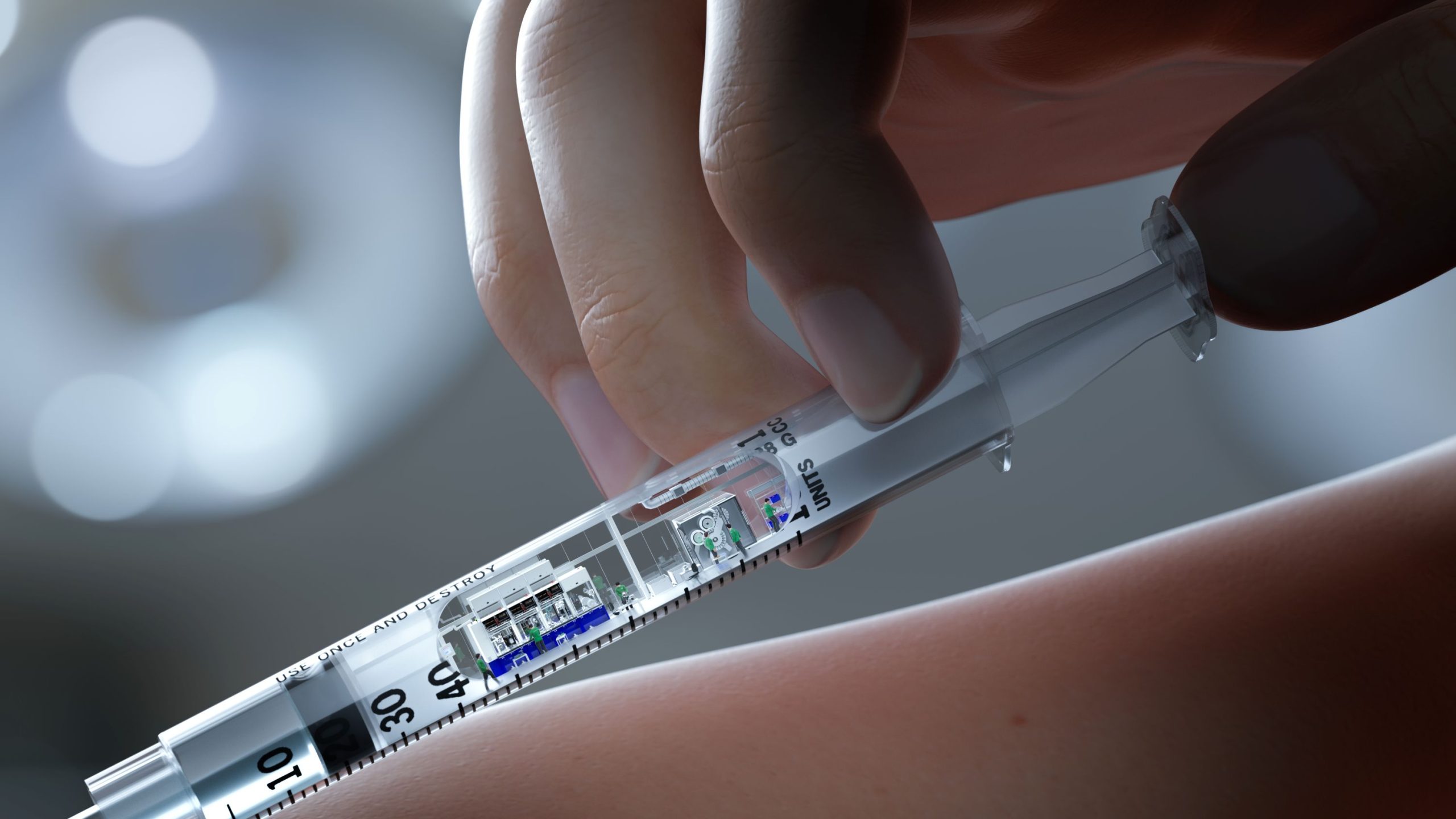 Tijdens het schrijven van deze lesbrief zijn de vaccinaties tegen het Covid-19 in volle gang. In korte tijd moeten ontzettend veel mensen gevaccineerd worden over de hele wereld. Dat betekent dat er heel veel spuiten nodig zijn en deze moeten gemaakt worden. Eén van de bedrijven die deze spuiten maakt is ELM Plastics. Zij hebben AAE gevraagd om een machine te ontwikkelen die in een korte tijd grote hoeveelheden doseerspuiten kan maken. Een spuit bestaat uit een kunststof cilinder met aan de ene kant de conus – de tip waarop een injectienaald wordt vast gemaakt. Aan de andere kant zit een goed aansluitende plunjer – ook wel de zuiger genoemd. De machine drukt een maatverdeling op de plunjer en zet de delen in elkaar.