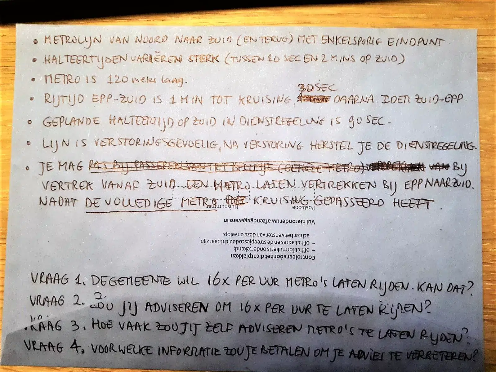 Deze vraag heb ik van mijn broer. Hij werkt bij de GVB (penbaar vervoer bedrijf) in Amsterdam op de afdeling projectmanagement.